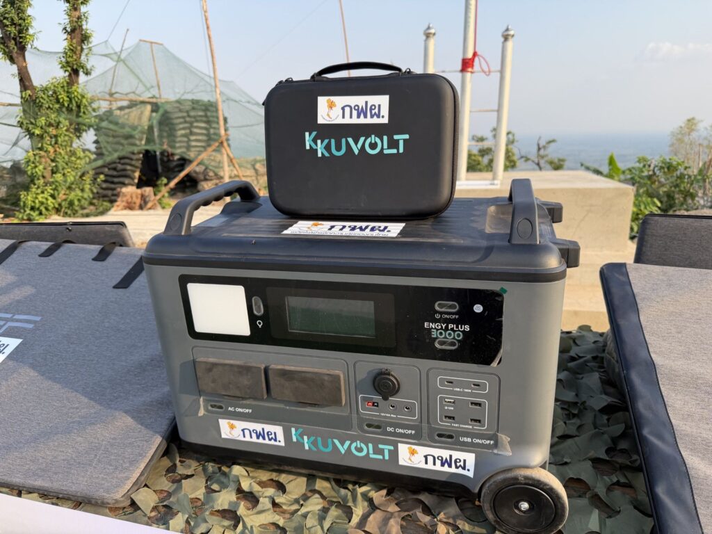 ระบบผลิตไฟฟ้าพลังงานแสงอาทิตย์พร้อมแบตเตอรี่ที่กระทรวงพลังงานและ กฟผ. นำมามอบให้ในครั้งนี้ ประกอบด้วย โซลาร์เซลล์ Solar PV แบบพับได้ ขนาดกำลังผลิต 400 วัตต์ จำนวน 3 แผง รวมกำลังการผลิต 1,200 วัตต์ พร้อมด้วยระบบแบตเตอรี่กักเก็บพลังงานขนาดความจุ 3 กิโลวัตต์ชั่วโมง ติดตั้งล้อเพื่อความสะดวกในการเคลื่อนย้าย ซึ่งระบบแบตเตอรี่ดังกล่าว ผลิตโดยฝีมือคนไทยจากมหาวิทยาลัยขอนแก่น ซึ่งมีการทดลองใช้งานในพื้นที่จริง พบว่าระบบผลิตไฟฟ้าพลังงานแสงอาทิตย์พร้อมแบตเตอรี่ดังกล่าว เพียงพอกับการใช้งานของกองกำลังตลอดคืน ตั้งแต่การชาร์จโทรศัพท์มือถือ วิทยุสื่อสาร อากาศยานไร้คนขับ (โดรน) ระบบแสงสว่าง หม้อหุงข้าว กาน้ำ และพัดลม