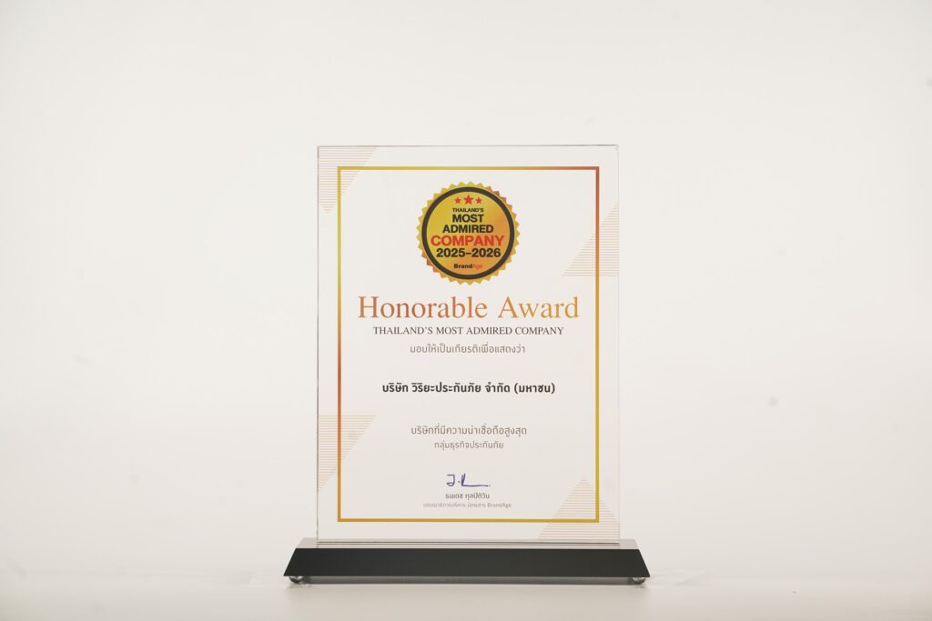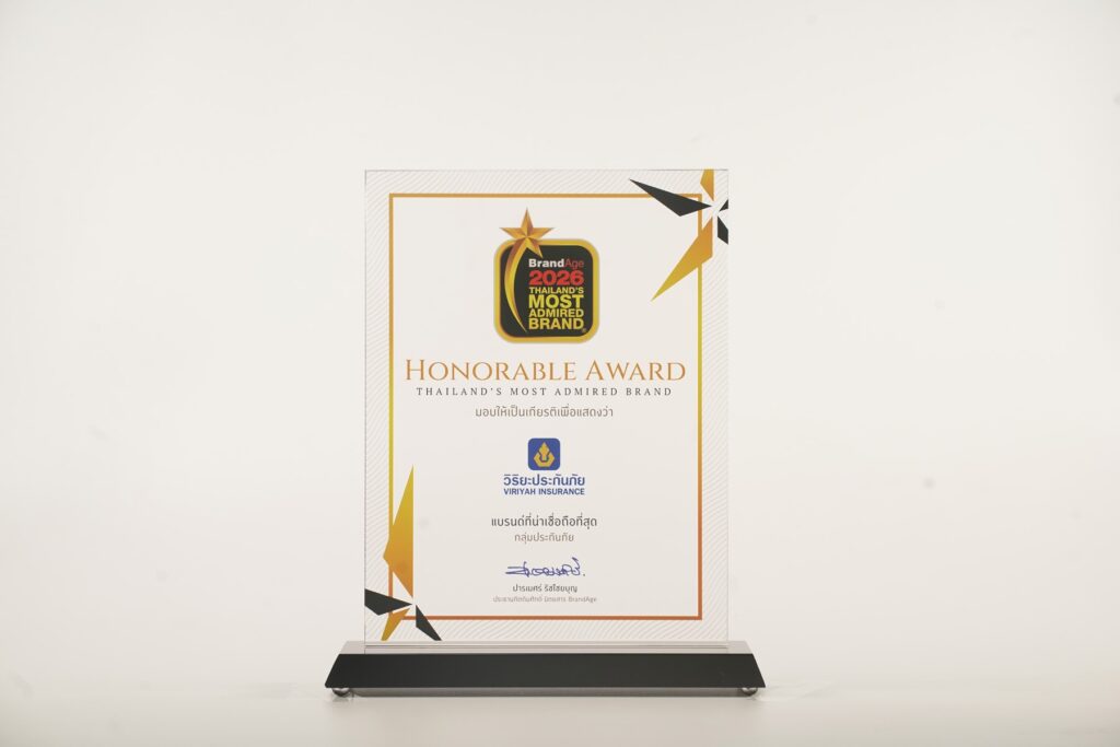 ดร.อรรชกา สีบุญเรือง อดีตรัฐมนตรีว่าการกระทรวงอุตสาหกรรม และรัฐมนตรีว่าการกระทรวงวิทยาศาสตร์และเทคโนโลยี และนายธนเดช กุลปิติวัน บรรณาธิการบริหารนิตยสาร BrandAge ร่วมแสดงความยินดีกับ นายอมร ทองธิว กรรมการผู้จัดการ บริษัท วิริยะประกันภัย จำกัด (มหาชน) ในโอกาสเข้ารับรางวัล “2026 Thailand’s Most Admired Brand” ต่อเนื่องเป็นปีที่ 23 (2004-2026) จากผลวิจัยความนิยมโดยนิตยสาร BrandAge ที่ศึกษาความคิดเห็นของผู้บริโภคทั่วประเทศ ร่วมกับคณาจารย์จากมหาวิทยาลัยชั้นนำ สะท้อนความไว้วางใจของผู้บริโภคที่เชื่อมั่นให้วิริยะประกันภัยดูแลความเสี่ยงในทุกสถานการณ์ ท่ามกลางบริบทโลกที่เปลี่ยนแปลงอย่างรวดเร็ว พร้อมกันนี้ บริษัทฯ ยังได้รับรางวัล “2025-2026 Thailand’s Most Admired Company” โดยได้รับรางวัลดังกล่าว เป็นครั้งที่ 5 (2020 และ 2023-2026) ตอกย้ำความมุ่งมั่นในการดำเนินธุรกิจด้วยความโปร่งใส ยึดมั่นในหลักธรรมาภิบาล ควบคู่กับการสร้างคุณค่าให้แก่ผู้เอาประกันภัย คู่ค้า และสังคมไทยอย่างยั่งยืนบนพื้นฐาน “ความเป็นธรรม คือ นโยบาย” ณ Prestige Hall Grande Centre Point Prestige Bangkok