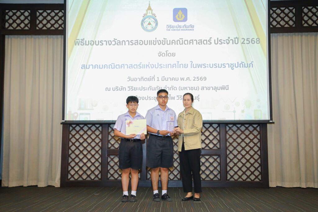 นายประสาน นิลมานัตต์ กรรมการและที่ปรึกษา บริษัท วิริยะประกันภัย จำกัด (มหาชน) ให้เกียรติเป็นประธานใน “พิธีมอบรางวัลการสอบแข่งขันคณิตศาสตร์ ประจำปี 2568” ในโอกาสที่บริษัทฯ ร่วมสนับสนุน “สมาคมคณิตศาสตร์แห่งประเทศไทย ในพระบรมราชูปถัมภ์” จัดการสอบแข่งขันคณิตศาสตร์ สำหรับนักเรียนชั้นประถมศึกษา มัธยมศึกษาตอนต้น และมัธยมศึกษาตอนปลาย ในระดับประเทศและระดับภูมิภาค พร้อมสนับสนุนเงินรางวัลสำหรับนักเรียนที่ได้รับรางวัลที่มีคะแนนสูงสุด ทั้งประเภทบุคคล และประเภททีม รวมจำนวนทั้งสิ้น 250,000 บาท เพื่อเป็นการเชิดชูเกียรติและเสริมสร้างแรงบันดาลใจทางการเรียนรู้ต่อไปในอนาคต ทั้งนี้ นักเรียนที่ได้รับรางวัลชนะเลิศระดับประเทศ ประเภทบุคคล จะได้รับโล่พระราชทานสมเด็จพระเจ้าพี่นางเธอ เจ้าฟ้ากัลยาณวัฒนา กรมหลวงนราธิวาสราชนครินทร์ โดยพิธีมอบจัดขึ้น ณ ห้องประชุมประไพ วิริยะพันธุ์ บริษัท วิริยะประกันภัย จำกัด (มหาชน) สาขาลุมพินี