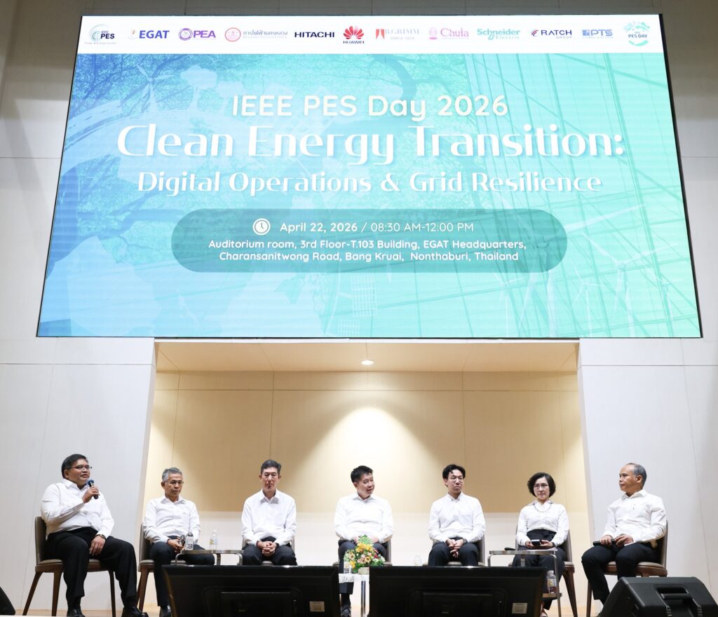 การไฟฟ้าฝ่ายผลิตแห่งประเทศไทย (กฟผ.) ร่วมกับ สมาคมไฟฟ้าและพลังงานไอทริปเปิลอี (ประเทศไทย) จัดงาน “IEEE PES Day 2026” ภายใต้แนวคิด “การเปลี่ยนผ่านพลังงานสะอาด : การดำเนินงานทางด้านดิจิทัล และความยืดหยุ่นของโครงข่ายไฟฟ้า (Clean Energy Transition: Digital Operations & Grid Resilience)” เพื่อแลกเปลี่ยนองค์ความรู้ด้านเทคโนโลยีดิจิทัลในการบริหารจัดการและเสริมเสถียรภาพโครงข่ายไฟฟ้า ผลักดันการใช้พลังงานสะอาดสู่เป้าหมาย Net Zero โดยมี นายนรินทร์ เผ่าวณิช ผู้ว่าการ กฟผ. และนายกสมาคม IEEE PES Thailand เป็นประธานเปิดงาน มีนักวิชาการ องค์กรภาครัฐ ภาคเอกชน นิสิตนักศึกษา ร่วมงานคับคั่ง ณ หอประชุมออดิทอเรียม อาคาร 50 ปี กฟผ. สำนักงานใหญ่ กฟผ. เมื่อวันที่ 22 เมษายน 2569 ที่ผ่านมา