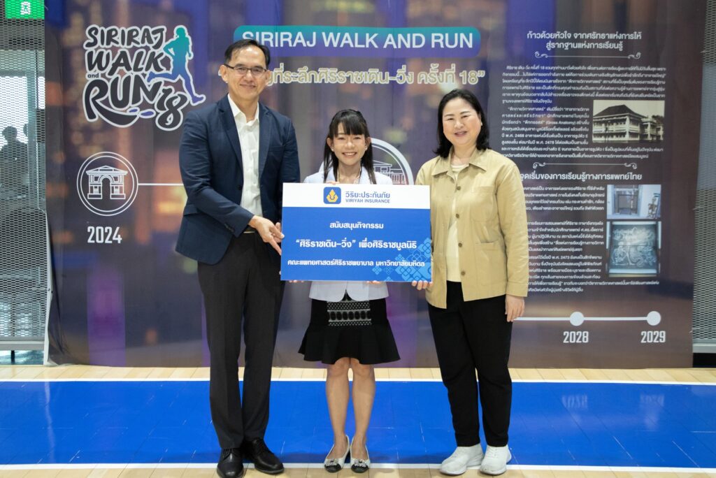 อ.ดร.พญ.ถิรจิต บุญแสน ผู้ช่วยคณบดีฝ่ายสร้างเสริมสุขภาพ คณะแพทยศาสตร์ศิริราชพยาบาล มหาวิทยาลัยมหิดล รับมอบเงินสนับสนุนกิจกรรม “ศิริราช เดิน–วิ่ง ครั้งที่ 18” จำนวน 100,000 จาก บริษัท วิริยะประกันภัย จำกัด (มหาชน) โดยมี นายพงศ์พันธ์ ประภาศิริลักษณ์ ผู้จัดการฝ่ายสื่อสารองค์กร เป็นผู้แทนมอบ เพื่อส่งเสริมให้ประชาชนตระหนักถึงความสำคัญของการออกกำลังกาย ซึ่งเป็นรากฐานสำคัญในการลดความเสี่ยงของการเจ็บป่วยและเสริมสร้างสุขภาพที่แข็งแรงอย่างยั่งยืน สะท้อนถึงความมุ่งมั่นของวิริยะประกันภัยในการร่วมสนับสนุนกิจกรรมที่เป็นประโยชน์ต่อสังคม อันนำไปสู่การยกระดับคุณภาพชีวิตของประชาชน และการสร้างสังคมแห่งสุขภาวะที่เข้มแข็งและยั่งยืนต่อไปในอนาคต ณ อาคารหอกีฬาสัมพันธ์ คณะแพทยศาสตร์ศิริราชพยาบาล เขตบางกอกน้อย กรุงเทพฯ