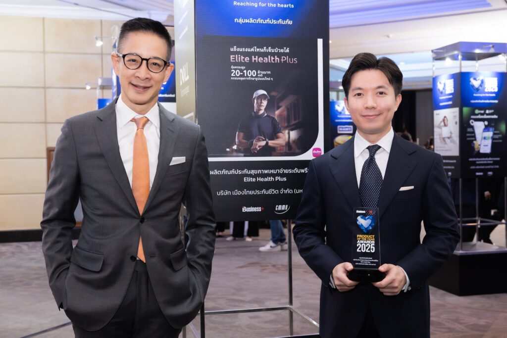 นายสาระ ล่ำซำ ประธานเจ้าหน้าที่บริหาร บริษัท เมืองไทยประกันชีวิต จำกัด (มหาชน) ขึ้นรับรางวัลสุดยอดผลิตภัณฑ์แห่งปี ประเภทผลิตภัณฑ์ประกันสุขภาพเหมาจ่ายระดับพรีเมี่ยม จากผลิตภัณฑ์ความคุ้มครองสุขภาพ “อีลิท เฮลท์ พลัส” ต่อเนื่องเป็นปีที่ 6 จากงาน “BUSINESS+ PRODUCT OF THE YEAR AWARDS 2025” จัดโดย นิตยสาร Business+ ในเครือ บริษัท เออาร์ไอพี จำกัด (มหาชน) ร่วมกับ วิทยาลัยการจัดการ มหาวิทยาลัยมหิดล (CMMU) โดยมี ฯพณฯ นุรักษ์ มาประณีต องคมนตรี ประธานในพิธีเป็นผู้มอบรางวัล งานจัดขึ้น ณ ห้องบอลรูม โรงแรมสวิสโฮเต็ล กรุงเทพฯ รัชดา