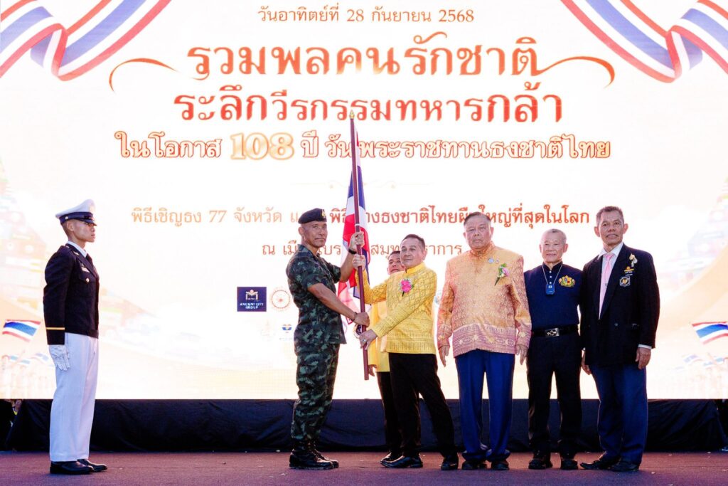 ทั้งนี้ ภายในงาน ได้มีการจัดพิธีกางธงชาติไทยผืนใหญ่ที่สุดในโลก และธงประจำจังหวัดทั้ง 77 จังหวัด รวมถึงนิทรรศการธงชาติไทยและพรรณไม้ที่เป็นสัญลักษณ์ของแต่ละจังหวัด เพื่อให้ผู้เข้าร่วมงานได้ตระหนักถึงประวัติศาสตร์ความเป็นมาของชาติและท้องถิ่นของตนเอง นอกจากนี้ ผู้แทนจากองค์กรภาคีเครือข่ายและประชาชนผู้เข้าร่วมงาน ยังได้ร่วมกันขับร้องเพลงชาติไทยและบทเพลงเฉลิมพระเกียรติ พร้อมด้วยการทำบุญตักบาตรพระสงฆ์ จำนวน 108 รูป เพื่อแสดงออกถึงความจงรักภักดีต่อชาติ ศาสนา พระมหากษัตริย์ และบำเพ็ญกุศลอุทิศแก่วีรชนทหารกล้า การจัดงานในครั้งนี้ จึงไม่เพียงแต่แสดงให้เห็นถึงความสำคัญของธงชาติไทย ในฐานะสัญลักษณ์ของความเป็นไทยที่ควรธำรงรักษาไว้ แต่ยังสะท้อนถึงความร่วมมือร่วมใจของทุกภาคส่วน ในการส่งเสริมความรักและความสามัคคีของคนในชาติอย่างพร้อมเพรียงกัน