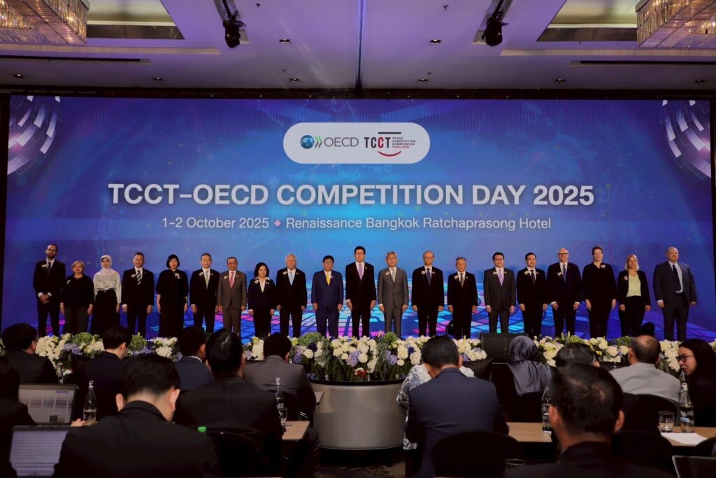 สำนักงานคณะกรรมการการแข่งขันทางการค้า (สำนักงาน กขค.) ร่วมกับองค์การเพื่อความร่วมมือทางเศรษฐกิจและการพัฒนา (OECD) ได้จัดการประชุมระหว่างประเทศ TCCT – OECD Competition Day 2025 เพื่อขับเคลื่อนวาระการปฏิรูปการแข่งขันของประเทศ ภายใต้โครงการ OECD – Thailand Country Programme ระยะที่ 2 โดยมีหัวข้อหลักคือ “นโยบายการแข่งขัน” ซึ่งสะท้อนถึงความท้าทายของสภาพเศรษฐกิจในปัจจุบันที่มีการเปลี่ยนแปลงอย่างรวดเร็ว โดยปัจจัยสำคัญเกิดจากความก้าวหน้าทางเทคโนโลยี เช่น เทคโนโลยีปัญญาประดิษฐ์ (AI) เศรษฐกิจสีเขียว และพลวัตทางการค้าโลก เป็นต้น ท่ามกลางสภาวะดังกล่าว กรอบการกำกับดูแลการแข่งขันที่ทันสมัย ยืดหยุ่น และเข้มแข็ง จึงไม่ได้เป็นเพียงเครื่องมือทางกฎหมาย แต่ยังเป็นเงื่อนไขที่สำคัญต่อการพัฒนาเศรษฐกิจของประเทศอย่างยั่งยืน