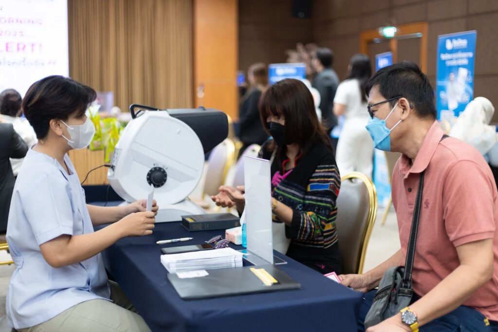 นอกจากนี้สมาชิกฯ ยังได้เข้าร่วมบูธสุขภาพ “NCDs Alert! เช็กก่อน ห่างไกลโรคเรื้อรัง” อาทิ บูธให้คำปรึกษาเฉพาะบุคคลด้านสุขภาพเชิงป้องกัน กับทีมแพทย์ พยาบาล และผู้ชำนาญการเฉพาะทางด้านโรค Cardio Metabolic บูธประเมินความเสี่ยงต่อการเกิดโรคหัวใจและหลอดเลือด โดยเจ้าหน้าที่พยาบาลหัวใจ กรณี Moderate-High Risk พร้อมรับสิทธิ์หมุนวงล้อรับรางวัลของพรีเมียมจากโรงพยาบาล บูธให้คำปรึกษาโรคเบาหวานและโรคอ้วน บูธ CGM เครื่องตรวจระดับน้ำตาลในเลือด แบบ Real-time บูธให้คำปรึกษาเรื่องโภชนบำบัด บูธวัคซีนไข้เลือดออก/วัคซีนงูสวัด/RSV /วัคซีนปอดอักเสบ/วัคซีนไข้หวัดใหญ่ บูธตรวจตาเบื้องต้นอาชีวอนามัย บูธตรวจมวลกระดูกเบื้องต้น และช้อปสินค้าเพื่อสุขภาพอีกมากมาย