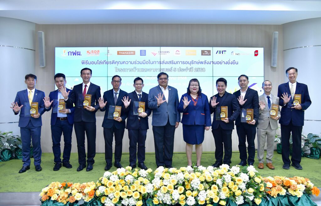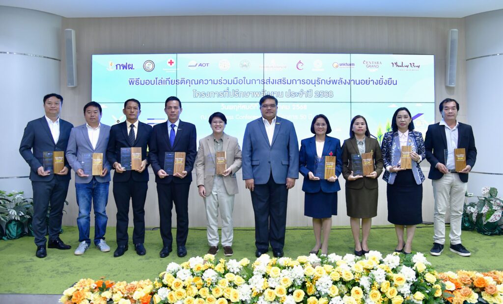 นายวฤต รัตนชื่น รองผู้ว่าการยุทธศาสตร์ การไฟฟ้าฝ่ายผลิตแห่งประเทศไทย (กฟผ.) เป็นผู้แทน กฟผ. มอบโล่เกียรติคุณความร่วมมือในการส่งเสริมการอนุรักษ์พลังงานอย่างยั่งยืน ประจำปี 2568 แก่หน่วยงานพันธมิตรผู้เข้าร่วมโครงการบ้านและอาคารเบอร์ 5 จำนวน 11 ราย โครงการที่ปรึกษาพลังงาน กฟผ. จำนวน 11 ราย และมอบเกียรติบัตรแก่หน่วยงานภาครัฐที่ร่วมพัฒนาแนวทางการเพิ่มประสิทธิภาพการใช้พลังงานของเครื่องทำน้ำเย็น (Chiller) ในหน่วยงานภาครัฐ จำนวน 2 ราย เมื่อวันที่ 16 ตุลาคม 2568 ที่ผ่านมา