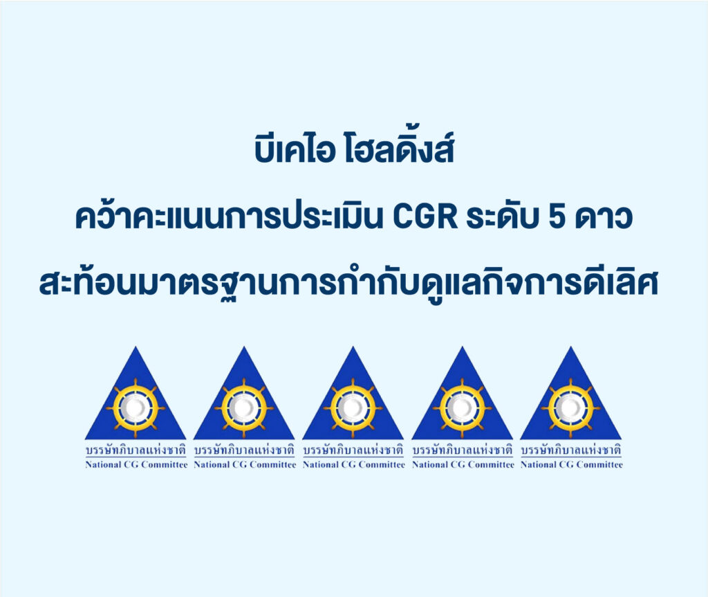 “บีเคไอ โฮลดิ้งส์” คว้าคะแนนการประเมิน CGR ระดับ 5 ดาว สะท้อนมาตรฐานการกำกับดูแลกิจการดีเลิศ